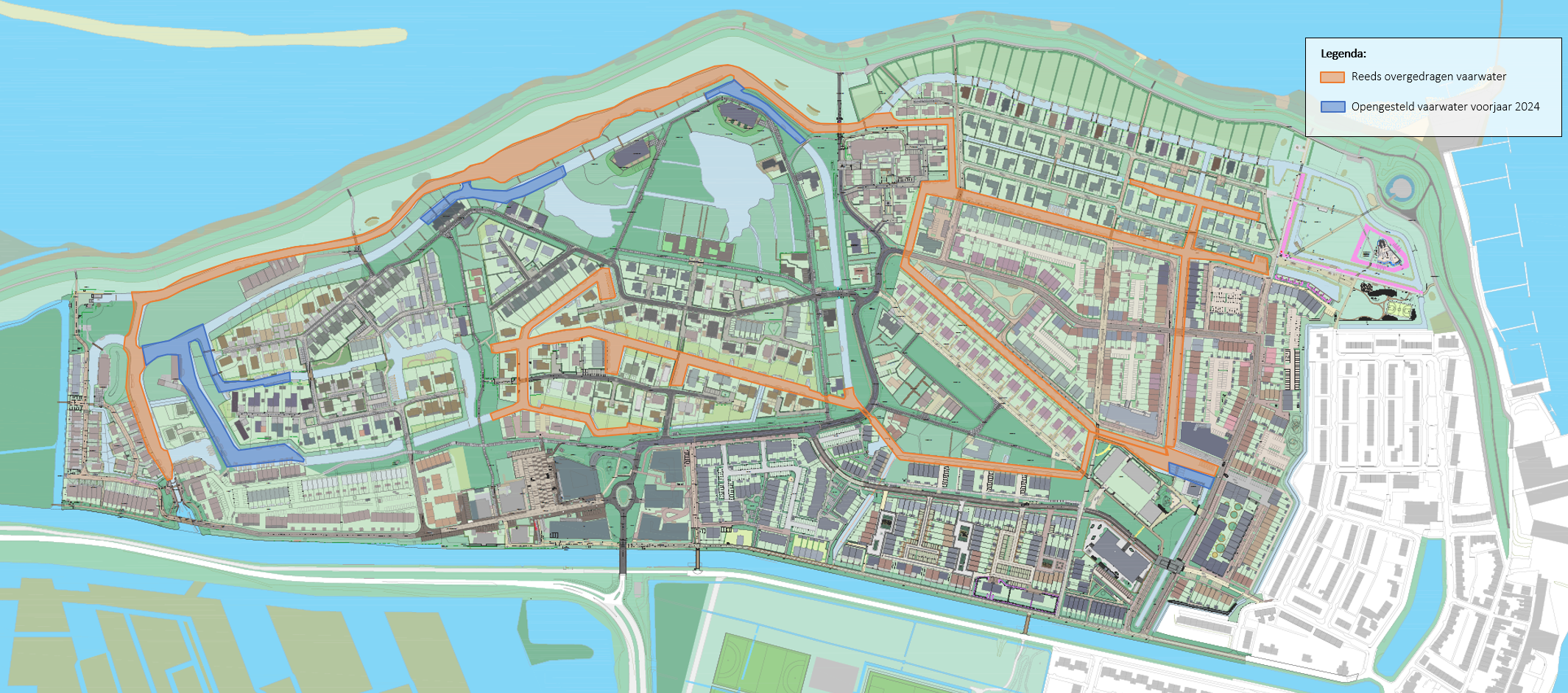 Een deel van de opengestelde watergangen leidt langs bouwterrein, het is niet toegestaan hier aan de oevers aan te leggen.