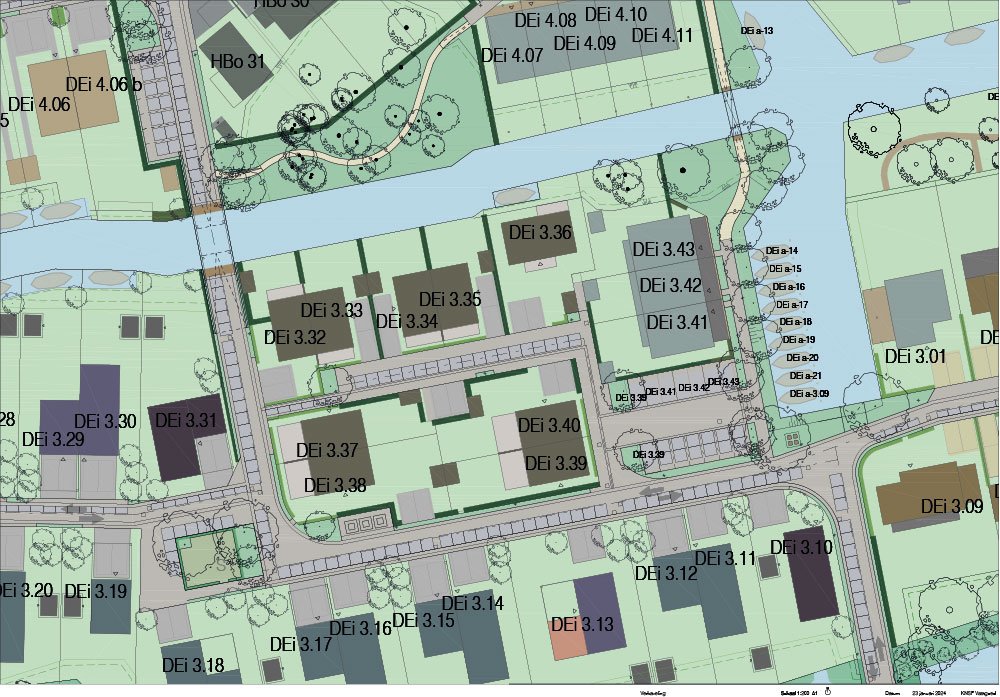 Aan de noordzijde van de westelijke Eilanden is het stedenbouwkundig plan aangepast. Er zijn meer woningen ingepast maar het stedenbouwkundige raamwerk blijft hetzelfde. Suggesties?