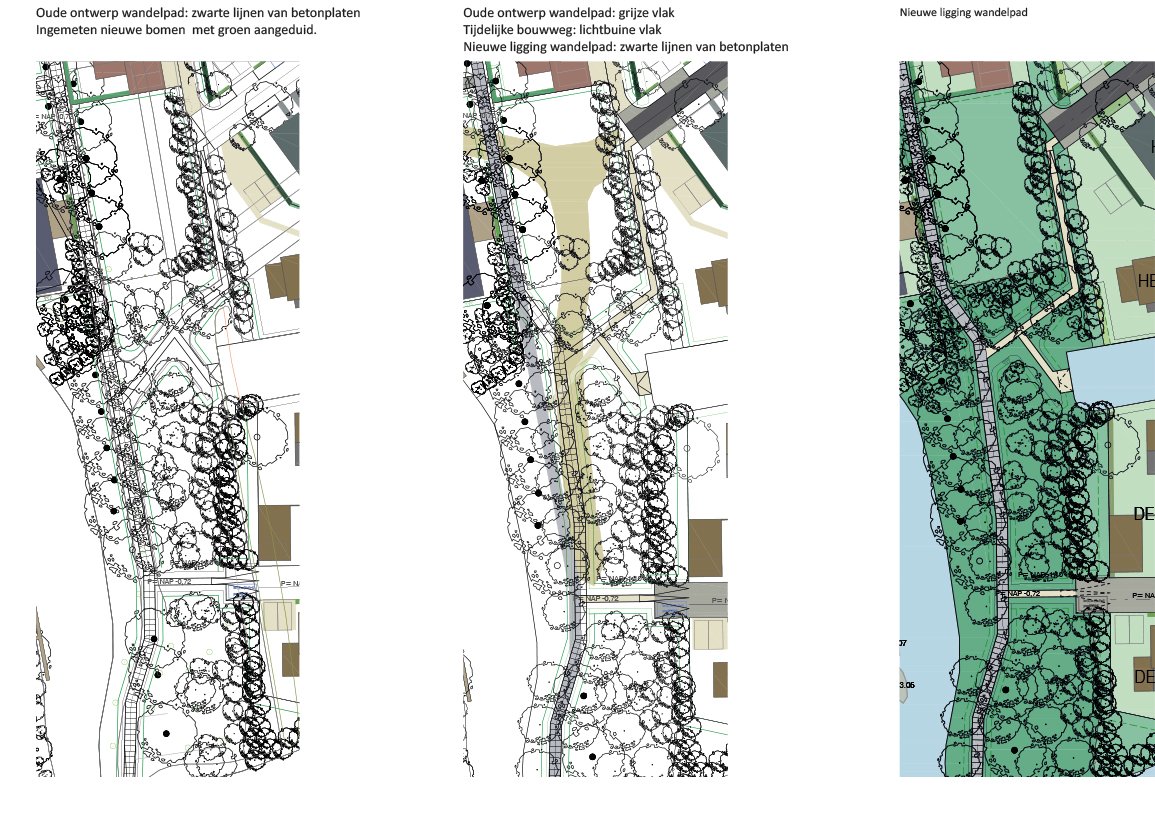 Vanwege de tijdelijke bouwweg en de wens om de nieuw aangeplante bomen te behouden is het plan ontstaan om het pad iets te schuiven ten opzichte van het eerdere DOSP. Het pad komt te liggen tussen fase 6 en 7. Suggesties?